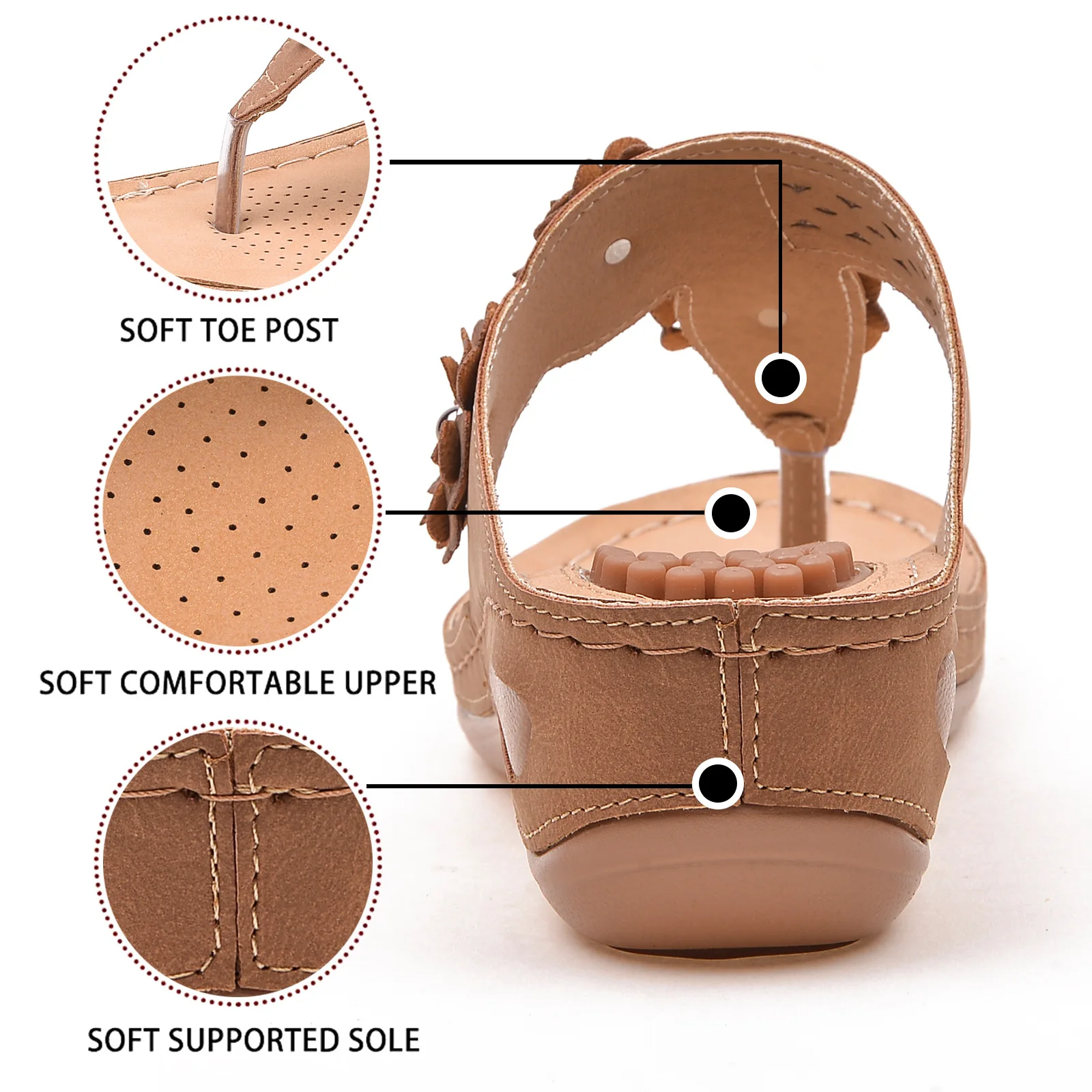 With these sandals, you won’t need expensive doctor’s visits or expensive insoles. Every step you take with the sandals is cushioned by the sturdy and soft sole. The thick sole absorbs shocks and supports the entire foot, not just the heel.