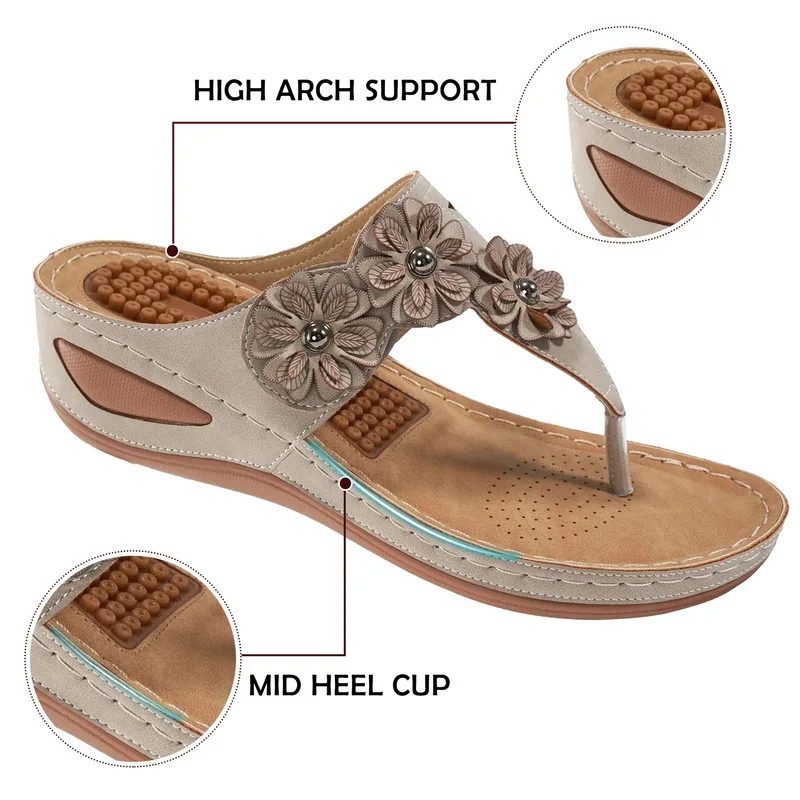 🔥LAST DAY SALE OFF 50%🔥Women Wedge Sandals 2023 Summer Premium Massage Open Toe Sandals Print Anti-Slip Pu Leather Casual Female Platform Vintage Shoes